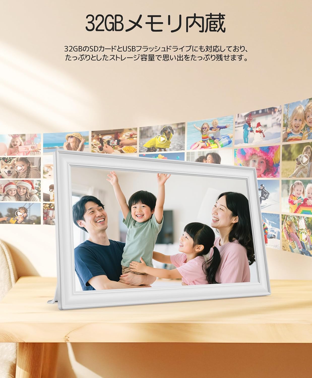 このモデルの最大の強みは、デジタル機器でありながら「温もりのあるコミュニケーション」を実現している点にあります。10.1インチというサイズは、一般的なL版写真よりも一回り大きく、リビングのどこからでも視認できる絶妙な大きさです。1280×800の高解像度パネルは、光の反射を抑えつつ色彩を鮮やかに再現するため、まるで現像した写真がそこに置かれているかのような錯覚を覚えます。