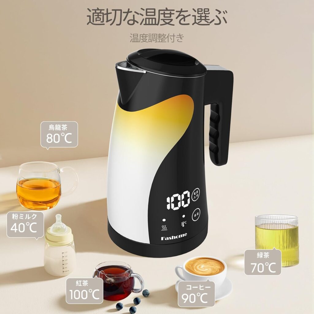 さらに、特に人気の「Fashome電気ケトルKCK02A」をピックアップします。コーヒーに最適な90℃、緑茶がおいしく淹れられる80℃など、細かな温度設定ができるこのケトルは、果たして本当に私たちの毎日を豊かにしてくれるのでしょうか。実際の利用者のリアルな声を集め、その使い勝手や満足度を忖度なく解説します。