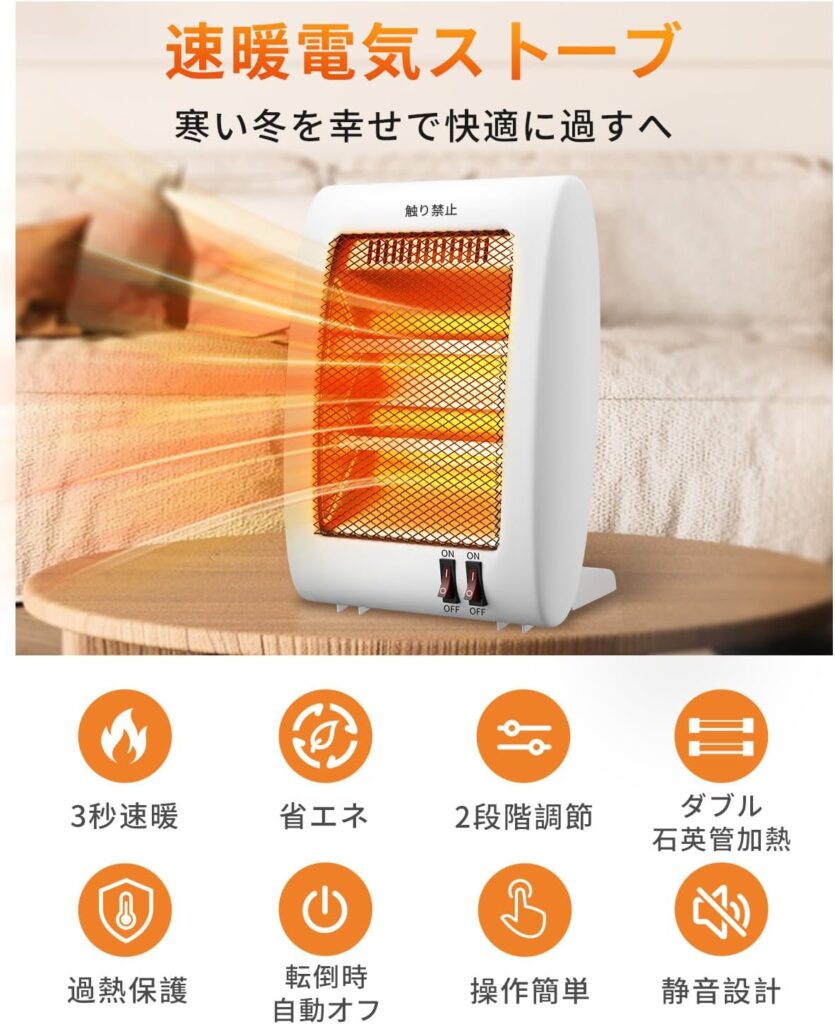 - 安定性の課題: 非常に軽量でコンパクトな設計は利点である一方、本体に重みがないため、特に小さなお子様やペットがいる環境では、わずかな接触で転倒するリスクが高まります。もちろん転倒時自動OFF機能は搭載されていますが、転倒自体を頻繁に起こさないよう、設置場所には細心の注意が必要です。