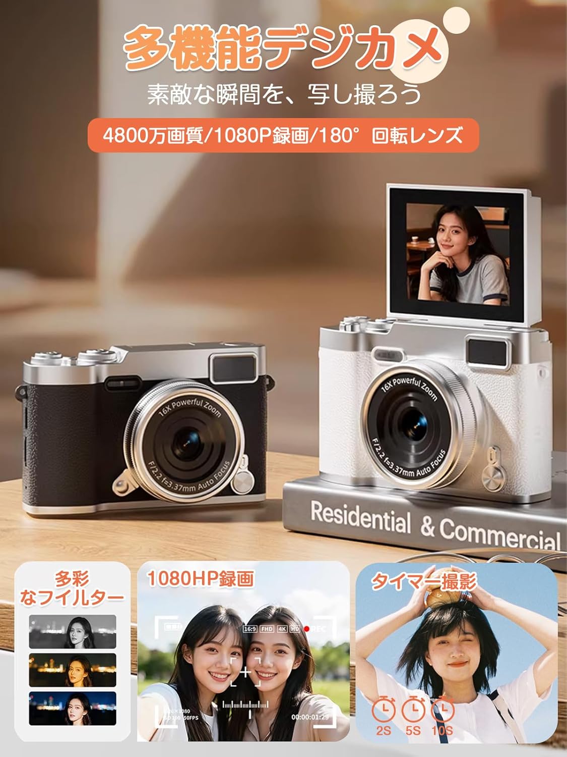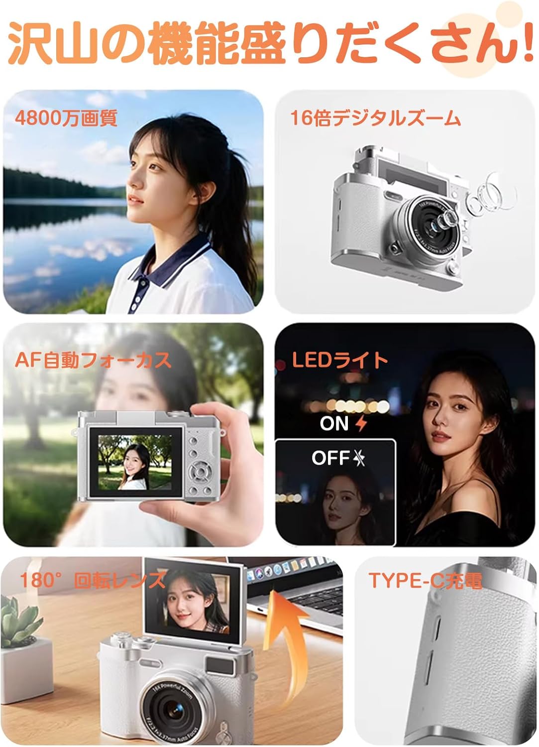 商品紹介:funttogo デジタルカメラ 180回転レンズ・前後カメラ