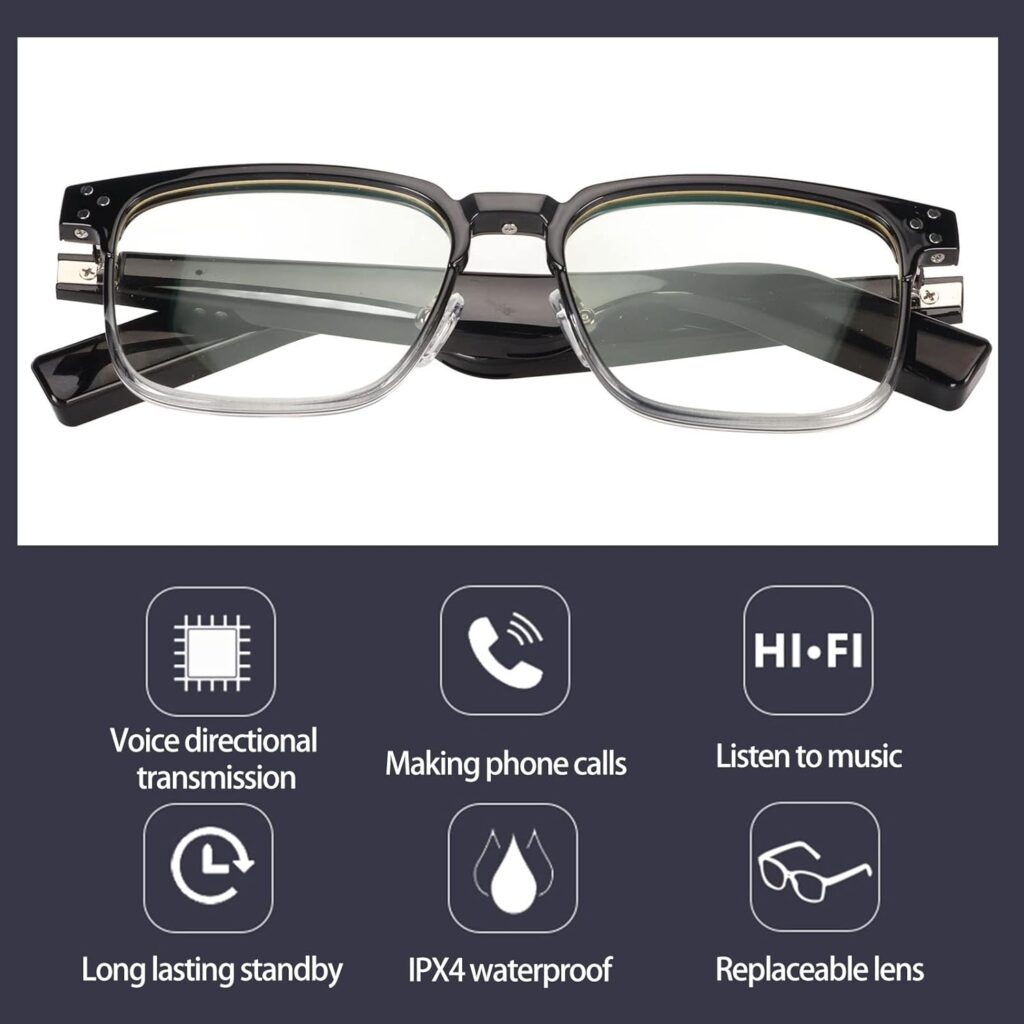 単なるサングラスではなく、標準でブルーライトカット機能を備えている点は高く評価できます。スマホやPCが手放せない現代人にとって、日常的に目を保護できるのは嬉しい配慮です。さらに、多くの安価なスマートグラスが見過ごしがちな「度付きレンズへの交換対応」は、視力矯正が必要なユーザーにとって非常に価値の高い特色です。これにより、普段使いのメガネと同じ感覚でスマートグラスを導入できます。 - 途切れにくくクリアな音響体験