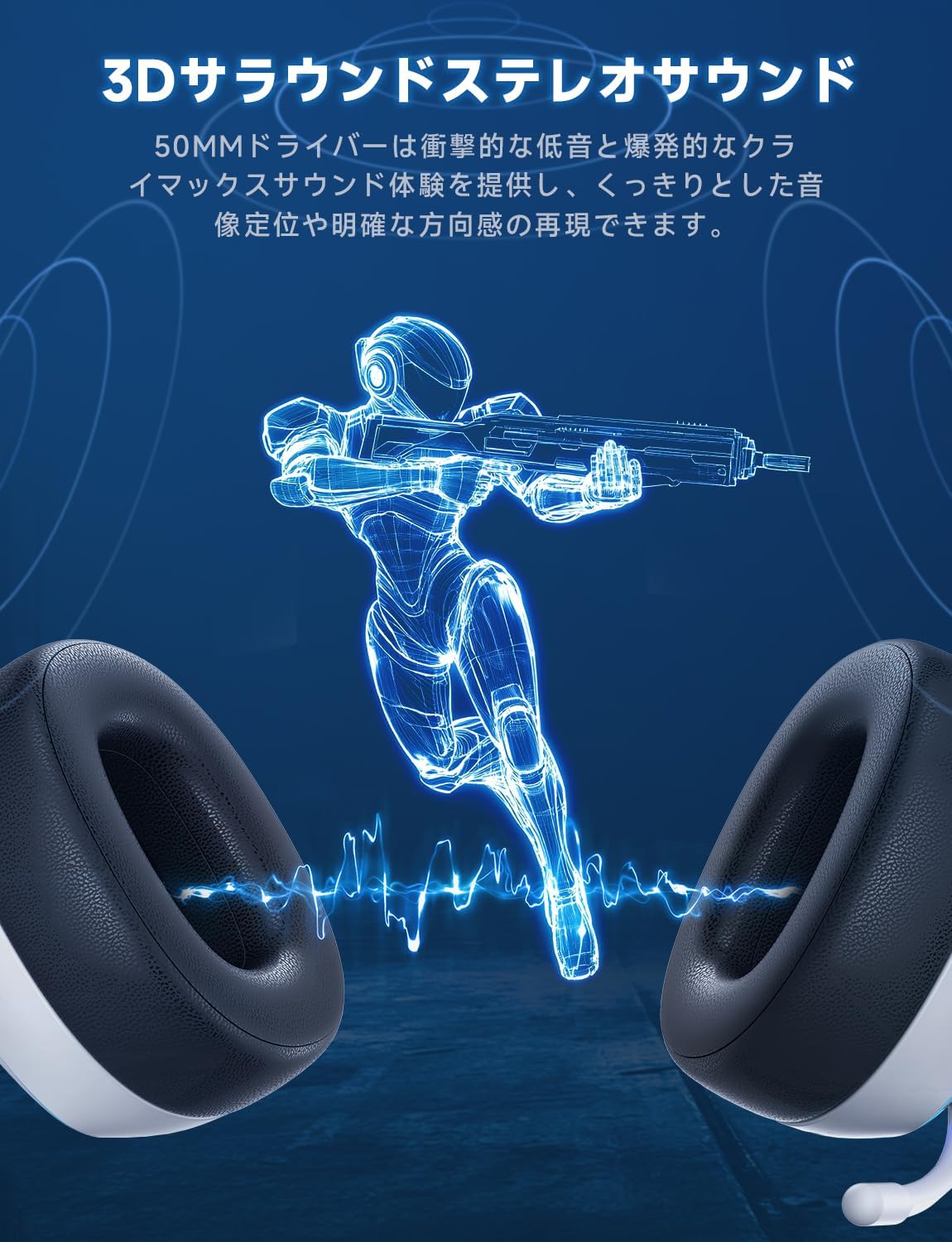 例えば、プレイヤーはPCでのFPSゲーム中は低遅延の2.4Ghzワイヤレスで集中し、休憩中に席を立ってスマートフォン(Bluetooth)で音楽を聴き、さらにバッテリーが切れた際には付属の3.5mmケーブルでPS4に接続し直すといった、シームレスな移行が可能です。これは、デスク周りのデバイスが多様化し、ゲームと日常生活の境界が曖昧になりつつある現代のライフスタイルに完全に合致しています。また、ホワイトのモダンなデザインは、従来の黒一色のゲーミングデバイスのイメージを打破し、部屋のインテリアにも馴染むため、「スタイリッシュにゲームを楽しみたい」という新しい層のニーズにも応えています。32オームという標準的なインピーダンスは、接続するデバイスを選ばず、安定した音量を提供しやすいという実用性にも優れています。