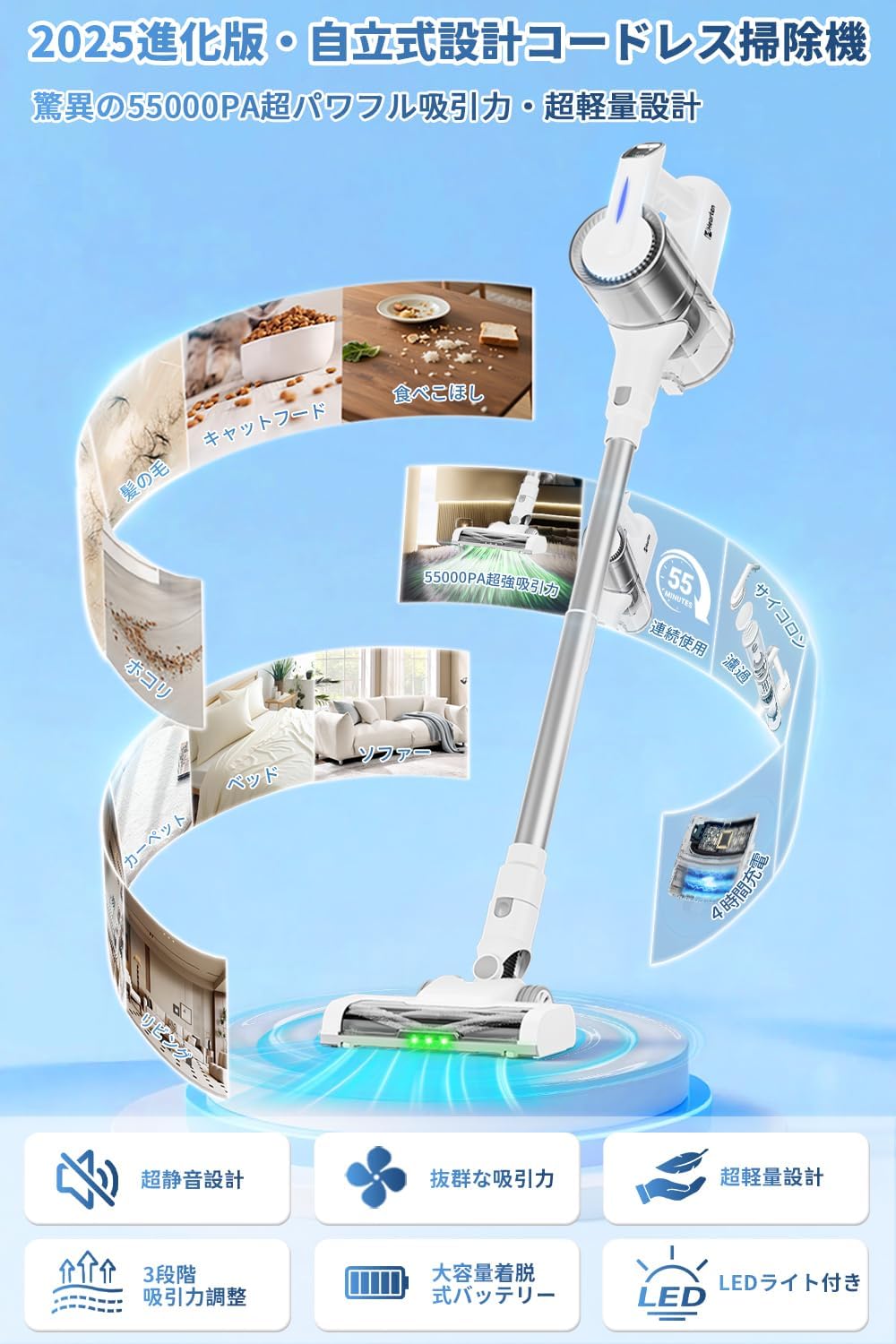 • 特徴:HEPA, コードレス, ハイパワー, 自立式, 軽量