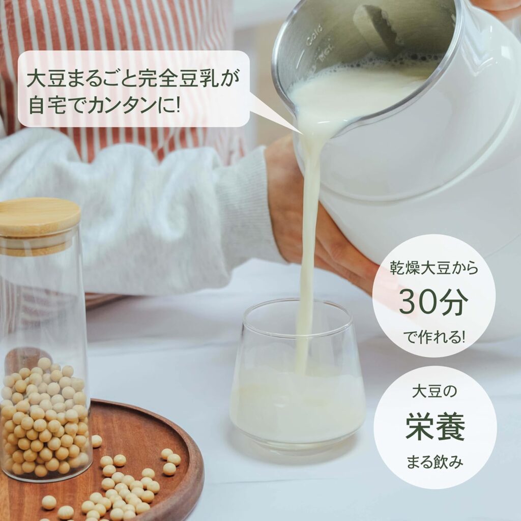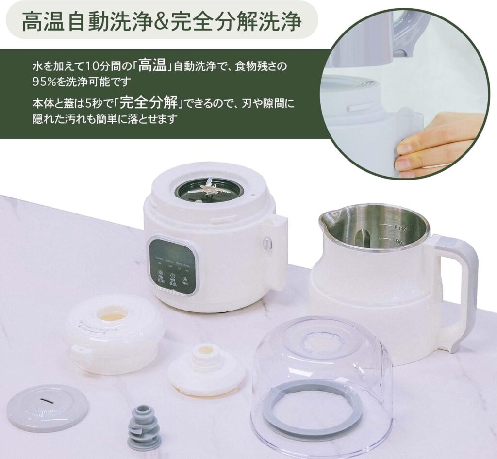 - 付属コンポーネント: クリーニングブラシ、レシピガイド、取扱説明書、計量カップ、豆乳メーカー