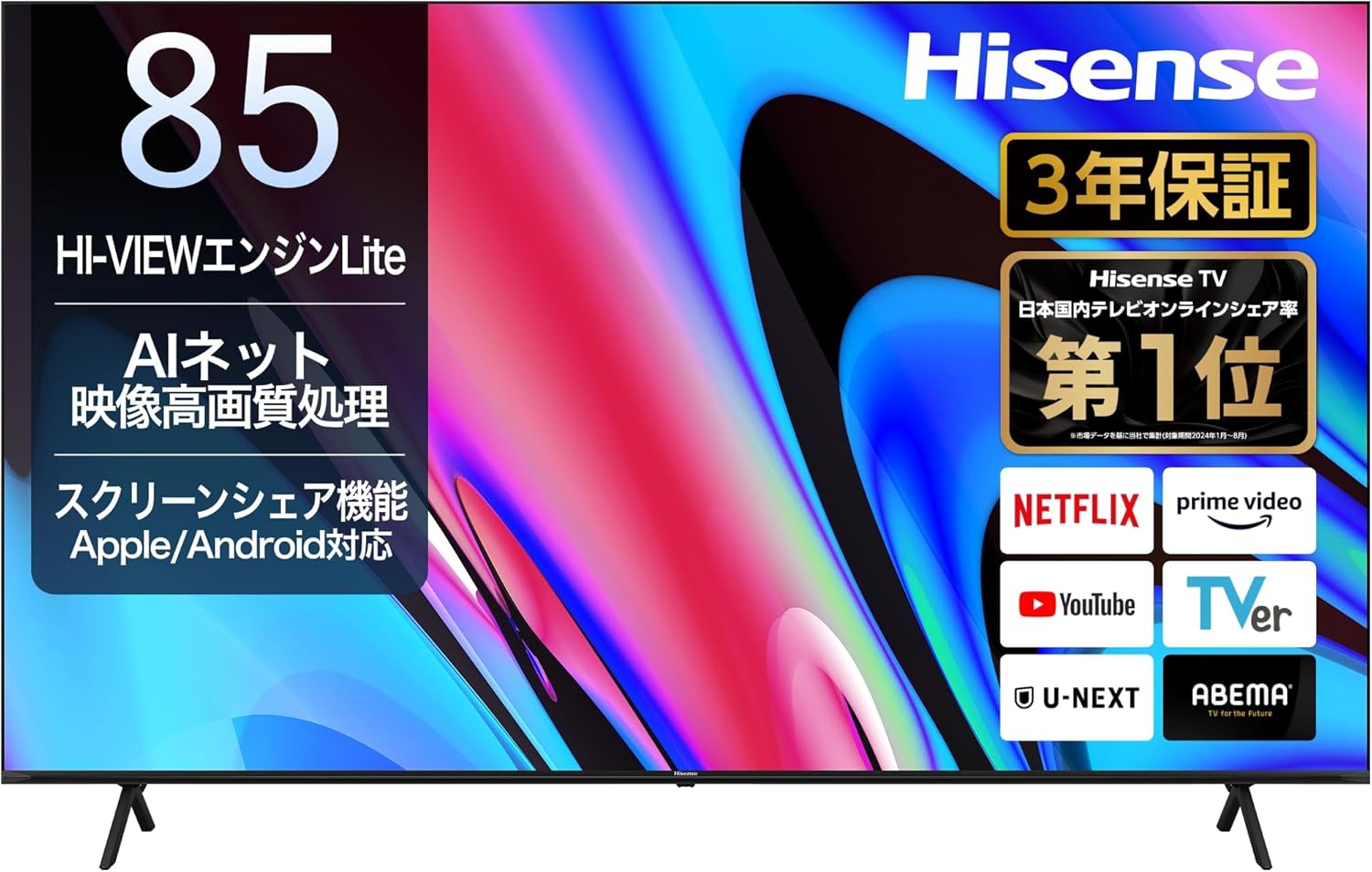- 日本国内メーカーの多くが1年保証である中、Hisenseは「3年保証」を標準としており、品質への自信とサポート体制の強化が見られます。