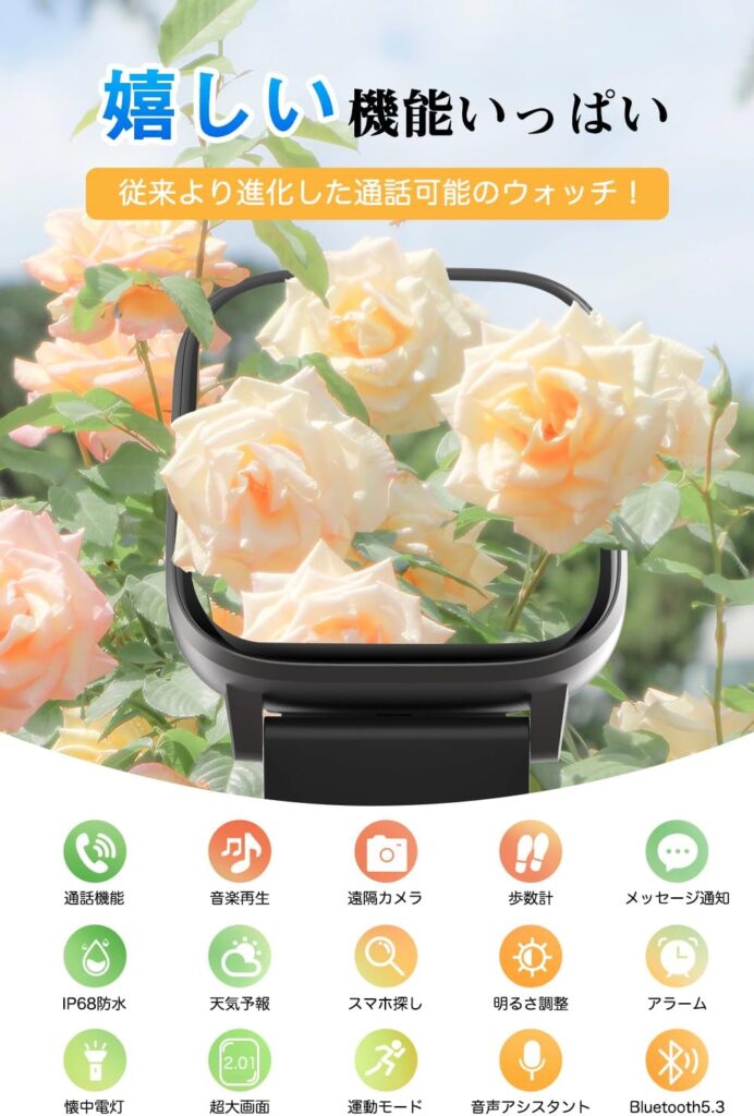 さらに、「全部入りの機能性」も見逃せません。この価格帯でありながら、Bluetooth通話機能、心拍数モニター、睡眠計測、さらにはSOS機能まで搭載しています。通常、これだけの機能を有名メーカー製で揃えようとすれば、価格は数倍に跳ね上がるはずです。「高級機に求められる機能を、誰もが試せる価格で提供する」という点で、本製品はガジェット入門者にとって最適な選択肢となり得ます。