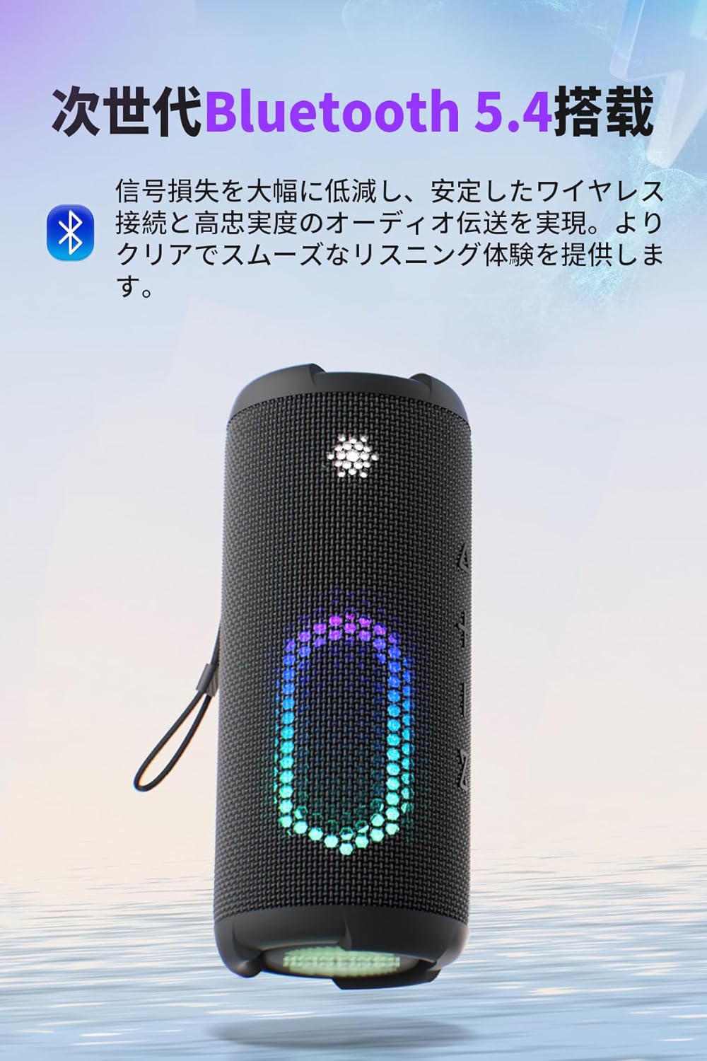 搭載されたLEDライトは、単なるおまけ機能ではありません。友人を招いたホームパーティーで音楽に合わせて点滅させれば、部屋は即席のクラブに早変わり。夜のベランダで静かな曲と共に灯せば、ムーディーなバーのような空間を演出できます。このスピーカーは音を再生するだけでなく、光で「場」の雰囲気を創り出し、いつもの日常を少しだけ特別な非日常へと変化させる、小さなエンターテイナーなのです。