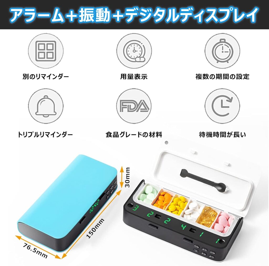 この商品の最大の魅力は、単なる「入れ物」を「健康管理の執事」へと進化させた点にあります。鮮やかなブルーの筐体は視認性が高く、カバンの中でもすぐに見つけることができます。また、最大の特徴であるスマート機能は、忙しい現代人にとって「記憶の外部化」を可能にします。「薬を飲んだっけ?」という不安から解放されることは、精神的なストレス軽減に直結します。