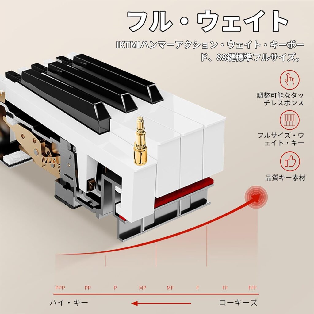 最も大きな違いは、やはり価格とスペックのバランスです。国内ブランドで88鍵盤、木調スタンド一体型、ワイヤレス対応のモデルを探すと、IKTMIの倍近い予算が必要になることも珍しくありません。もちろん、ヤマハやカワイといったメーカーには、長年培われた「音源のサンプリング技術」や「鍵盤のタッチを追求する情熱」において一日の長があります。