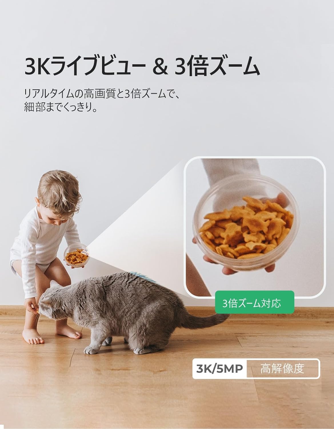 ・検知機能:AI人体検知、動体検知、音声検知