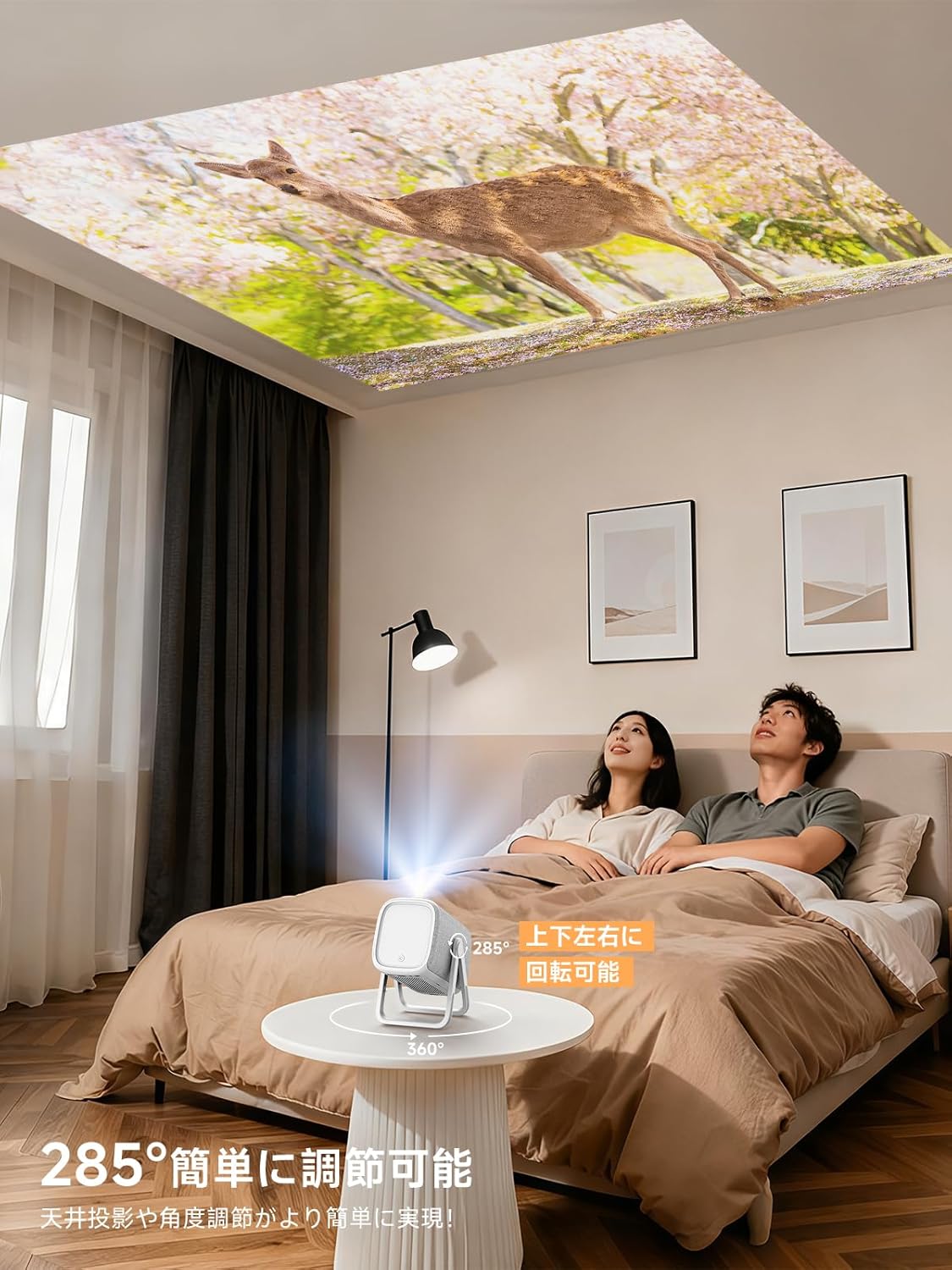 AC311の最大の魅力は、なんといってもその「設置の自由度」にあります。従来のプロジェクターは三脚や台が必要でしたが、本機は「折り畳み式アーム」を本体に統合しているため、箱から出してすぐに最適な角度で投影が可能です。これは、狭い日本の住宅事情において革命的な利便性と言えます。