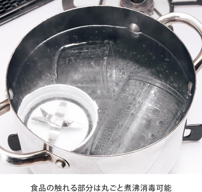 食材に触れる部分(ガラス容器・カッター)は丸ごと煮沸消毒対応。