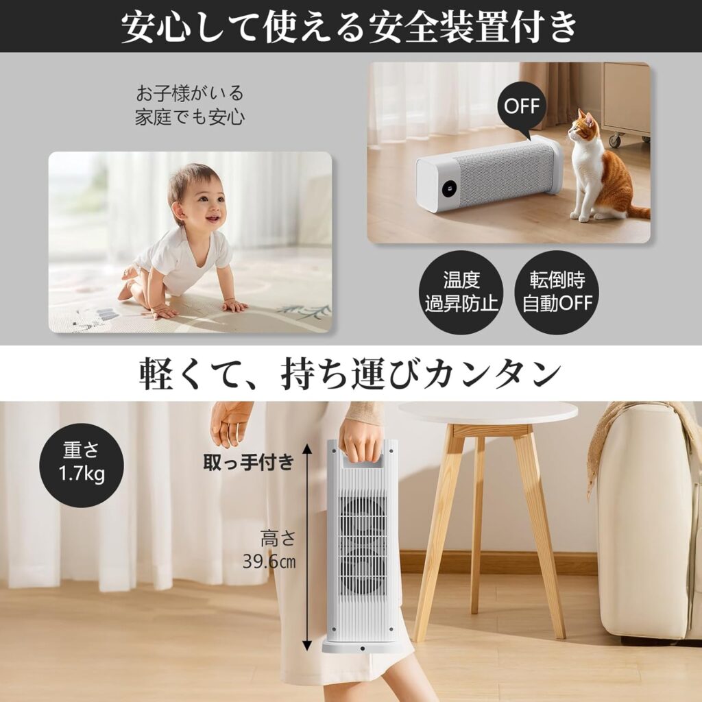 JIMISAN HD021は、ダイキンのような絶対的なパワーを追求するのではなく、「パーソナルスペースを快適にする手軽さ」に特化しています。2.7kgという軽さで持ち運びも簡単なので、日中はリビングのデスク横で、夜は寝室のベッドサイドで、といった柔軟な使い方が可能です。
