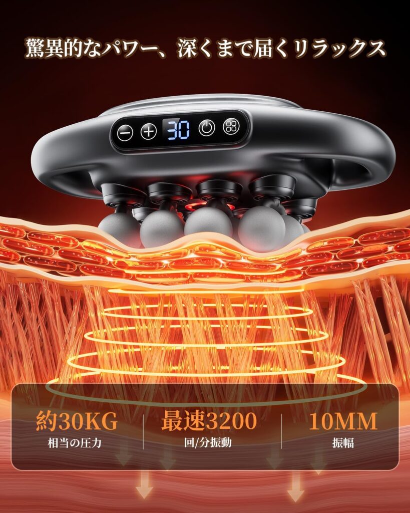 Jneikooの筋膜リリースガンが持つ最大の魅力は、「妥協なきパワーと多機能性の融合」にあります。