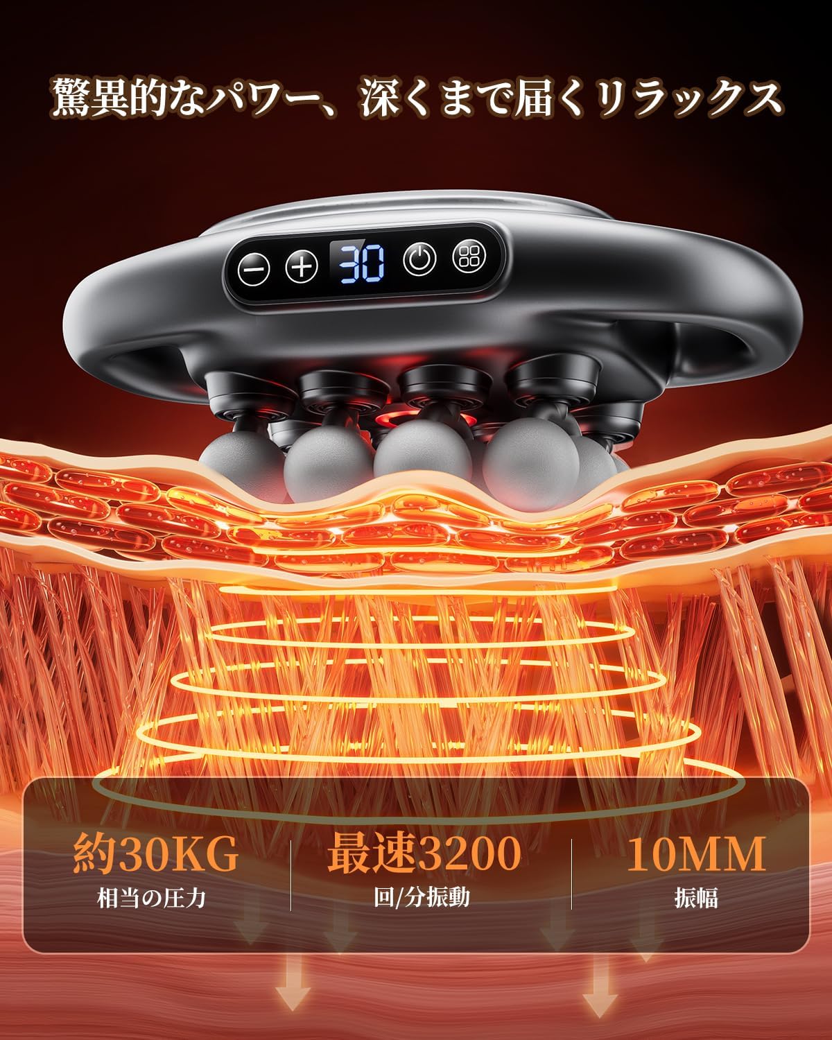 「長年悩まされていた肩の鉄板のような凝りが、強力な振動のおかげで嘘のように軽くなりました。パワー不足を感じることが全くありません。」