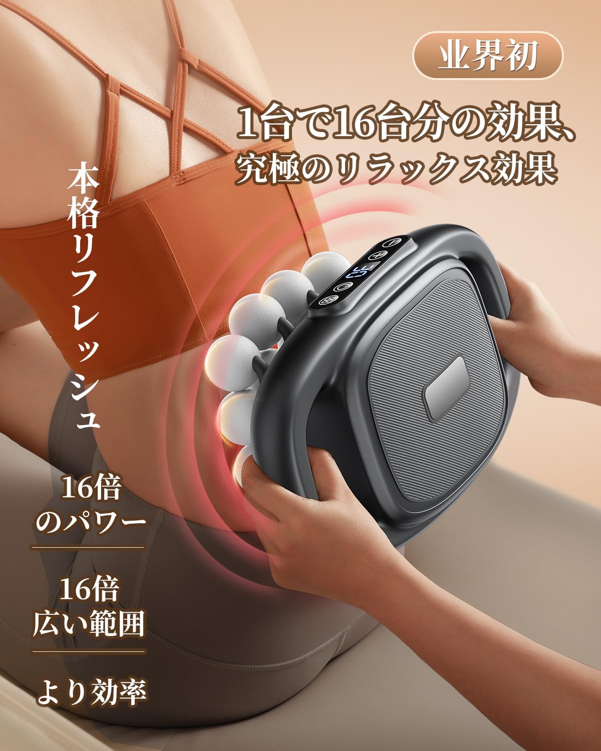 多くの軽量モデルが「振動が弱くて奥まで届かない」という課題を抱える中、本製品は1.35kgという重量をあえて持たせることで、筋肉の深層部まで響く重厚な振動を実現しています。これは、軽いハンマーよりも重いハンマーの方が釘を打ち込みやすいのと同じ原理です。特に、「1つで16つ相当」と謳われる多機能性は、単なるマッサージ機を超えた存在価値を示しています。