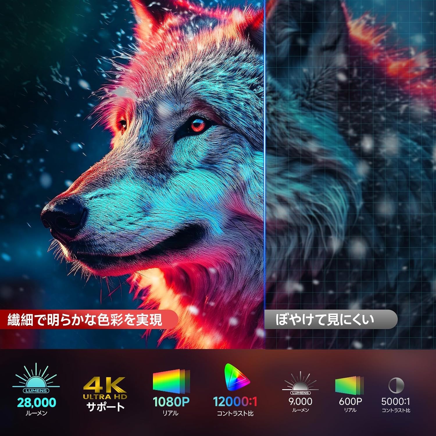 モバイルプロジェクターの代名詞とも言えるAnkerのNebulaシリーズと比較すると、JOWLURK A30は「解像度あたりのコスト」で圧倒的な優位性を持っています。Ankerの同価格帯モデルでは、解像度がHD(720p)やフルHD(1080p)に留まることが多い中、JOWLURKは4K入力をサポートする高精細なパネルを搭載しています。