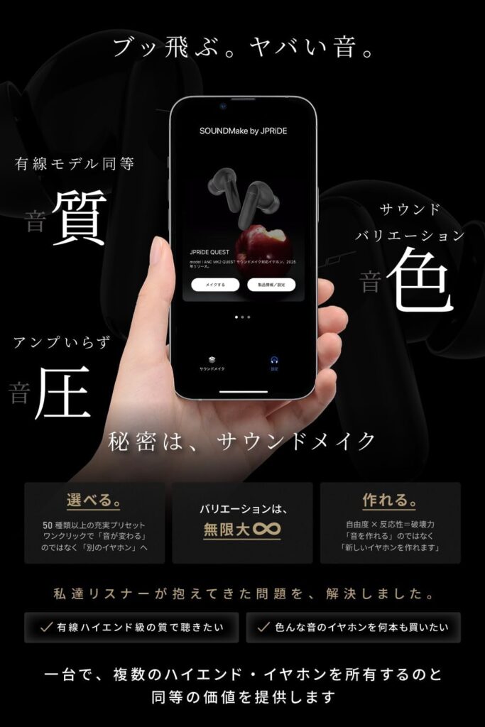 そんななか、SNSやガジェットファンの間で静かに、かつ確実に熱狂を生んでいるブランドがあります。それが『JPRiDE(ジェイピー・ライド)』です。広告費を削り、宣伝という名の虚飾を剥ぎ取った先に残る『本質的な音』とは一体どのようなものか。
