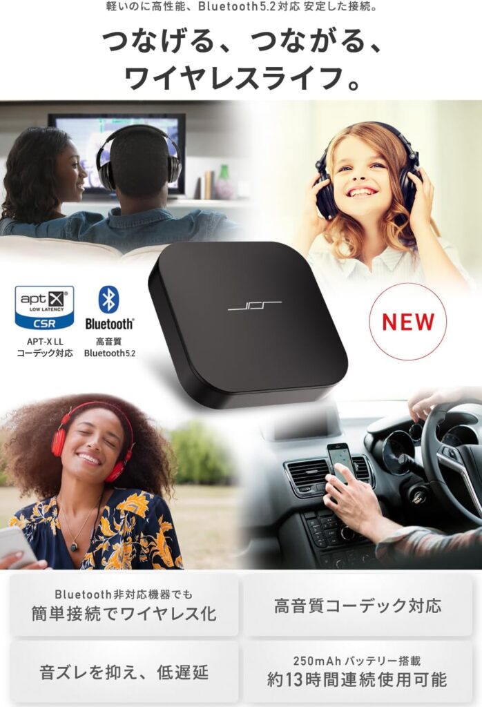 「とにかく小さくて邪魔にならないもの」を求めている人。日本の会社によるサポートを重視し、安価でも失敗したくない人。古いコンポやテレビを手軽にワイヤレス化する「最初の一台」を探している人には、JPT1が最もバランスの取れた選択肢です。