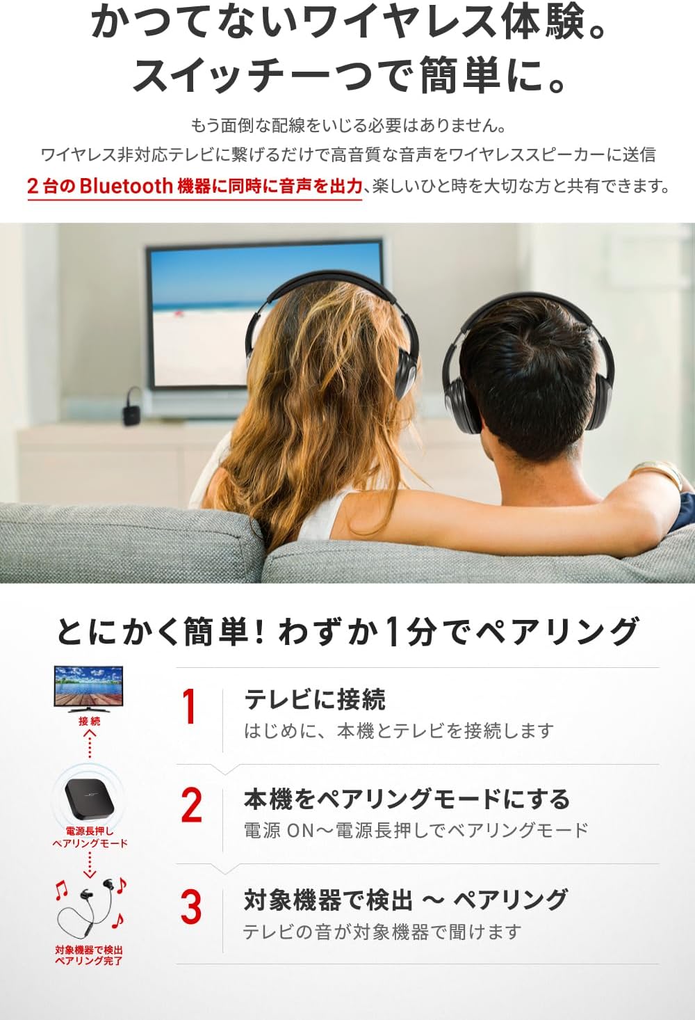 「テレビの音を深夜に聴くために購入しましたが、映像と音のズレがほとんどなくて驚きました」