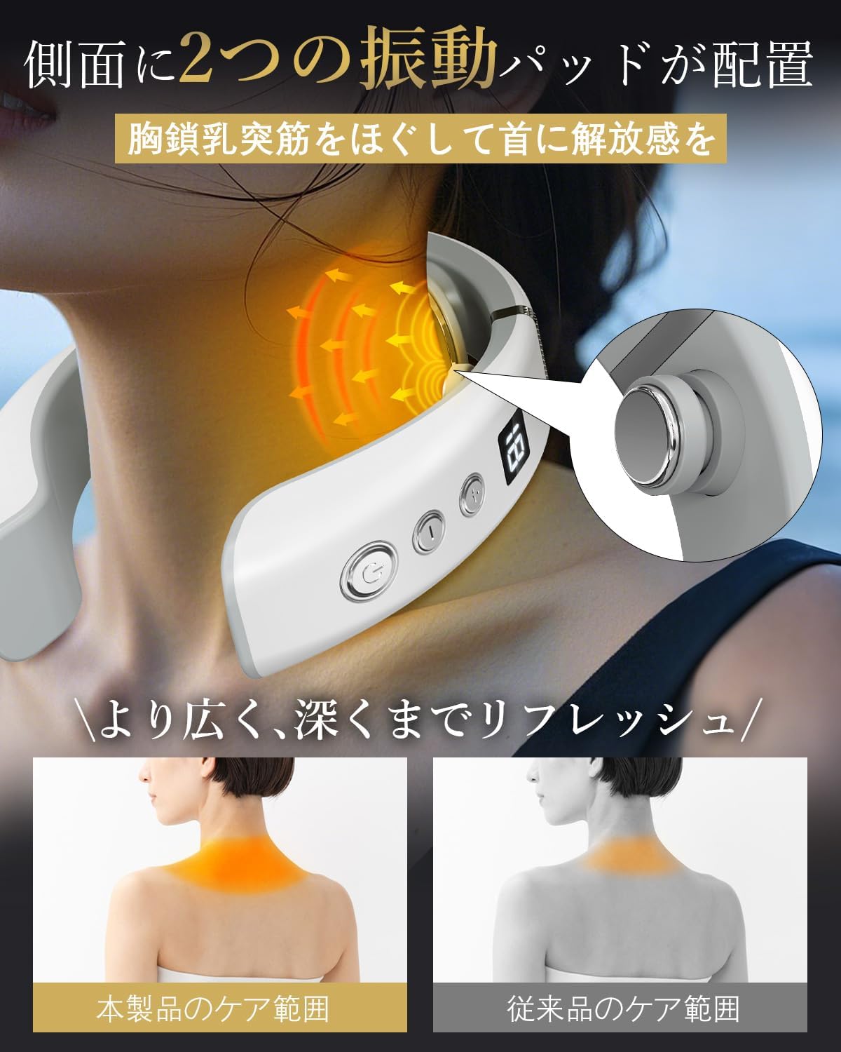 - Juliyas P4との決定的な違い: P4は200グラムという驚異的な軽さとポータビリティを最優先しています。これは、「治療」を目的とする専門機器とは思想が異なります。P4は、「日常的なリフレッシュ」、つまりデスクワークの合間や移動中の「血行促進」や「疲労の軽減」に重点を置いています。P4は軽量化のために、大型のもみ玉や強力なモーターを排除しており、その体感は「心地よい刺激」に留まります。