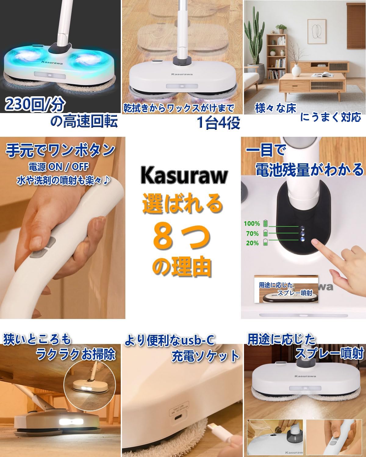 「KASURAWA 電動モップ」のポジティブな特色