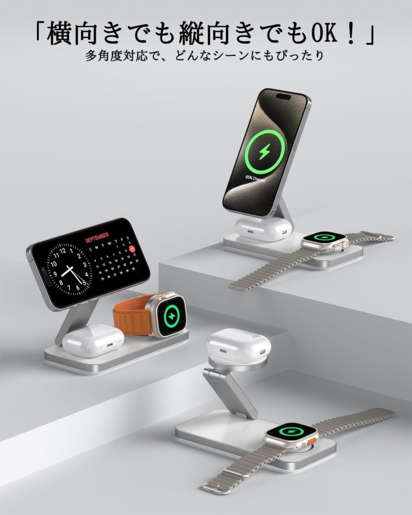 - 特徴:3 in 1 ワイヤレス充電, Magsafe対応, 折り畳み式