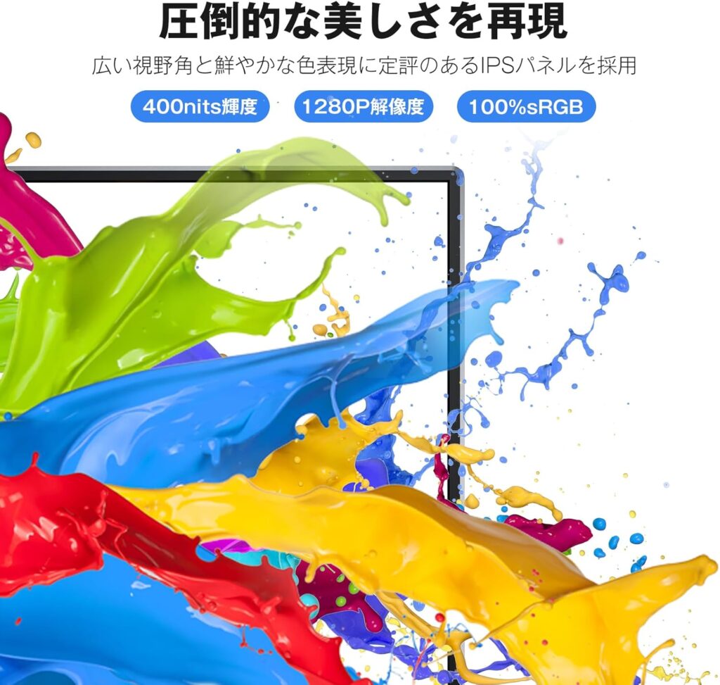 また、10.5インチというサイズにFHD級(1920×1280)の解像度を凝縮している点も見逃せません。画素密度(PPI)が非常に高くなるため、人間の目ではドットを識別できないほど滑らかで、まるで印刷物を見ているかのような「Retina級」の視覚体験を提供してくれます。