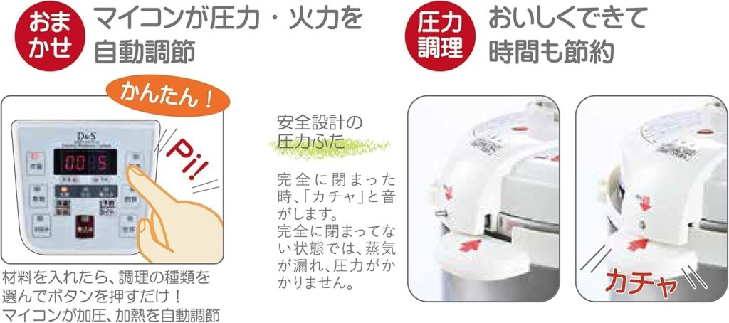 「ガス火の圧力鍋は爆発しそうで怖かったのですが、電気式は音が静かで安心して使えます」