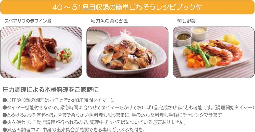 「付属のレシピブックの掲載数が40品と少なく、もっとバリエーションが欲しかったです」