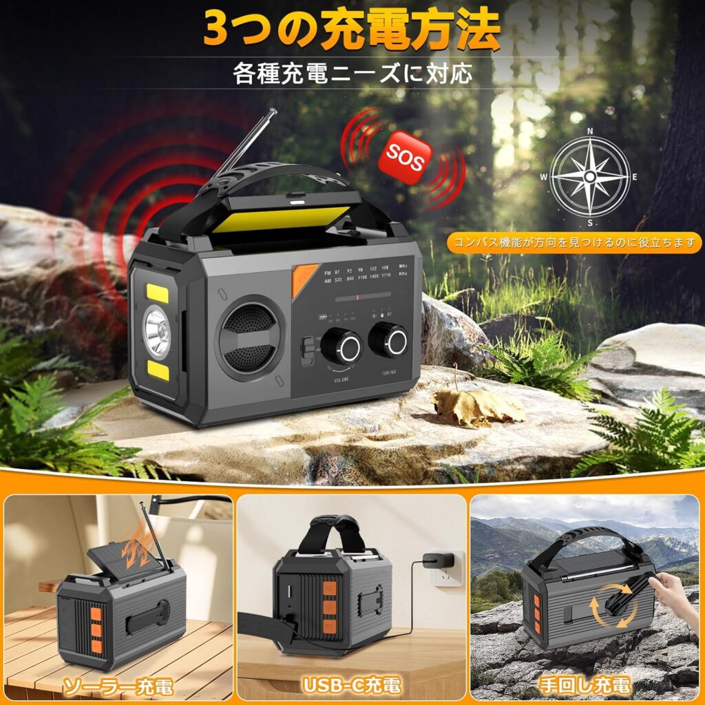 - H27との違い: 機能面では、モデルBはAMチューナーを搭載しているため、情報収集の幅ではH27より優位です。しかし、H27はBluetooth機能という「日常性」で大きく差別化を図っています。モデルBは完全に防災特化型で、普段は押し入れに眠りがちですが、H27はBluetoothスピーカーとして活用することで、機器の劣化を防ぎ、バッテリーを常に適正に保つという、防災グッズとして非常に重要な「メンテナンス性」で優位性を発揮します。