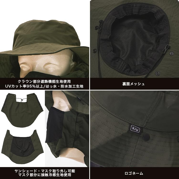 このハットの真髄は、名前の通り「フルプロテクション」を実現するための徹底的な多層防御構造にあります。 通常のUVカットハットは頭頂部を守るだけですが、本製品はクラウン部分に特殊な遮熱生地を封入しており、まるで日傘を被っているかのような温度上昇抑制効果を発揮します。 さらに、特筆すべきは機能の「可変性」です。 環境に合わせてマスクやシェードを着脱できるため、一台で「本格アウトドア仕様」から「日常のUV対策」までを網羅します。 マスク部分には肌に触れるとひんやり感じる接触冷感素材を採用しており、物理的な遮断による不快な蒸れを科学的なアプローチで解消しています。 雨を弾く防水性と、熱を遮る遮熱性、そして肌を守るUVカット率95%以上というスペックが三位一体となり、夏の過酷な環境を快適なフィールドへと変身させます。