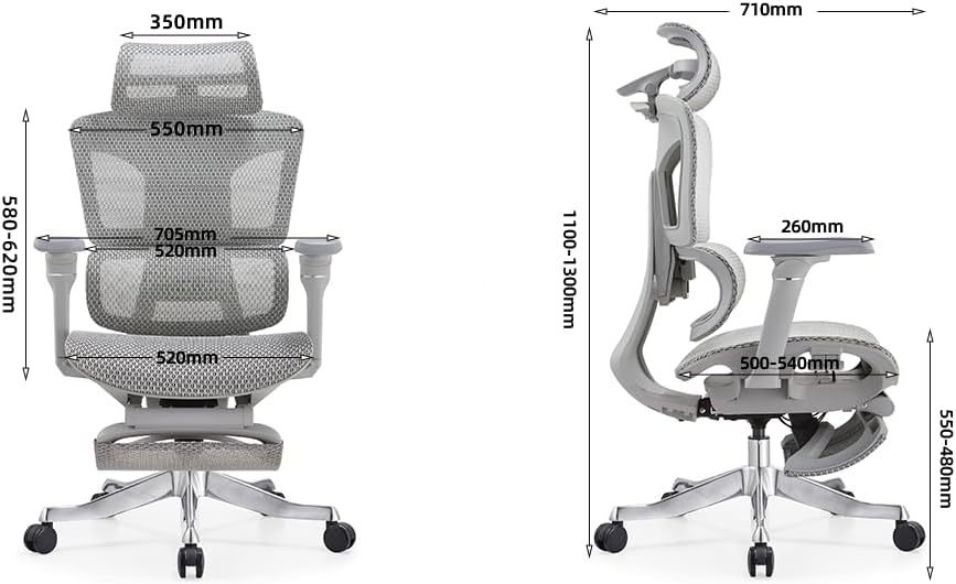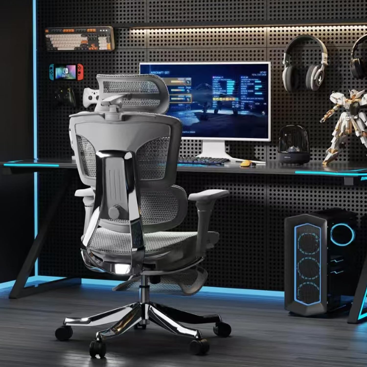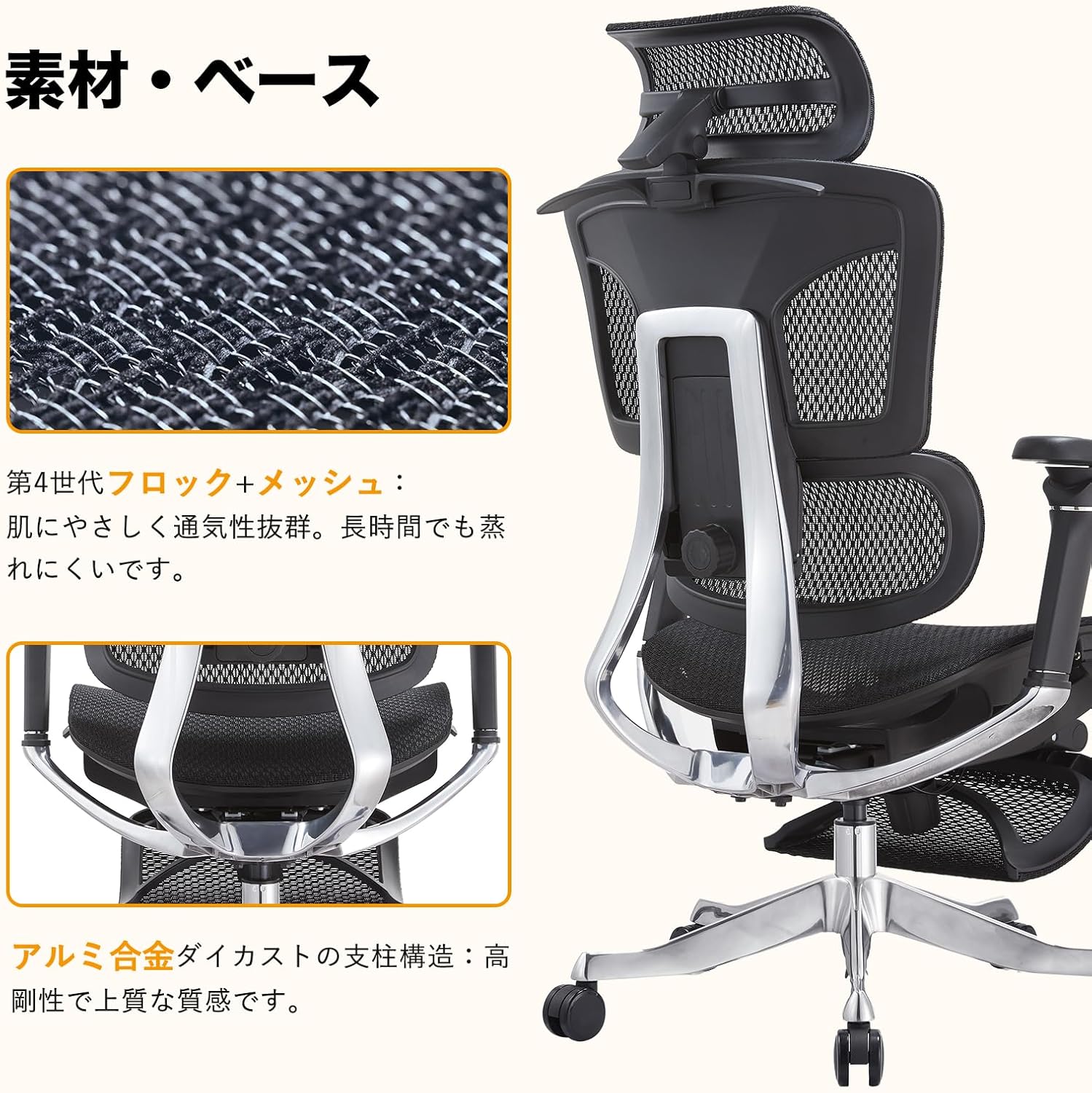⑤6つのサポートゾーン設計:頭部・背中・腰・座面・アームレスト・フットレストを最適化し、身体のラインにフィットする快適な座り心地を実現