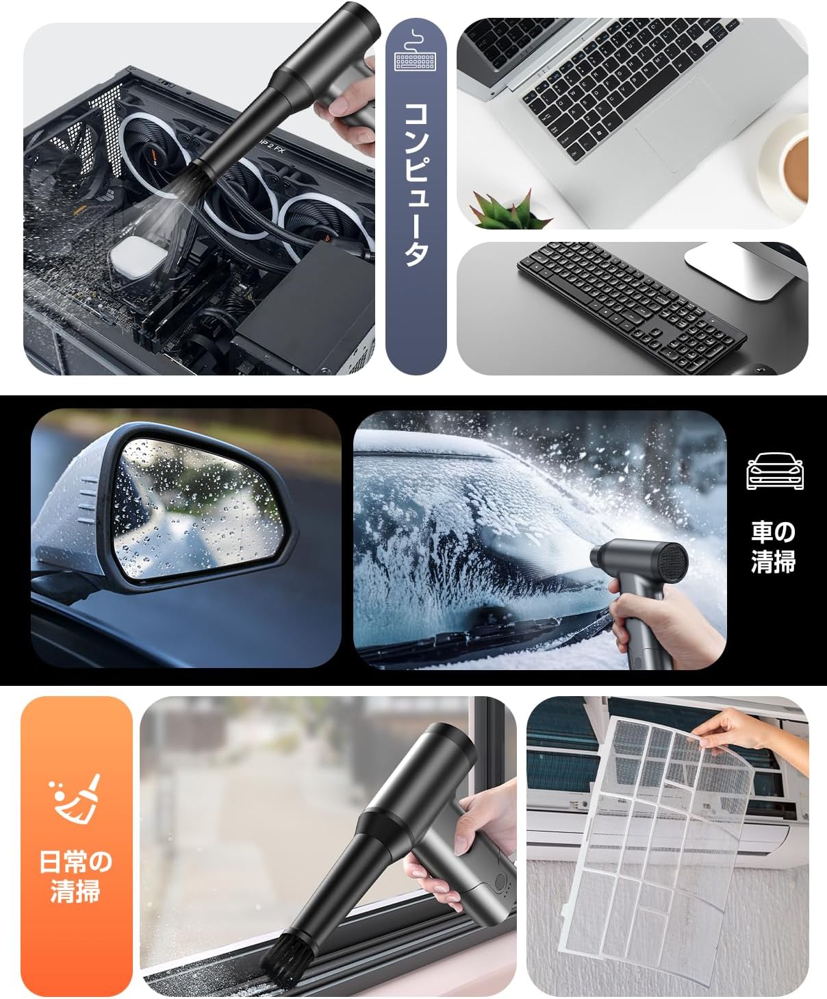 「パソコンのキーボードの隙間、カメラのレンズに付いた微細なチリ、車内のエアコン吹き出し口…」