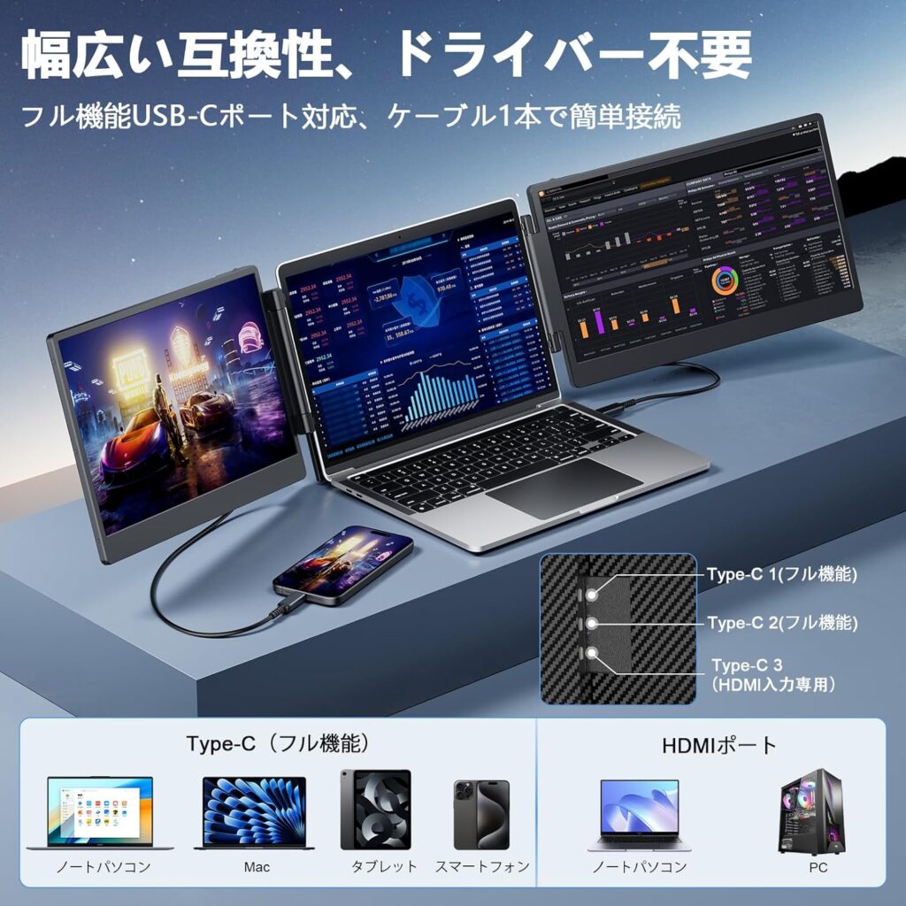そんな中で注目を集めているのが、ノートパソコンに直接取り付けて画面を一気に拡張できるポータブルモニターという新しいジャンルの商品です。
