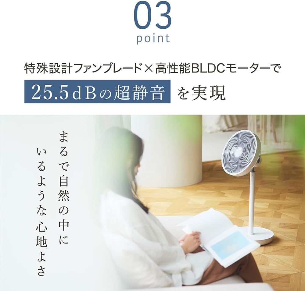 また、フロアマウント専用という仕様は、使い方の自由度をやや制限します。 デスクワーク中に手元に風が欲しい場合や、キッチンのカウンター上に設置したい場合には、別途卓上タイプの扇風機が必要になるかもしれません。