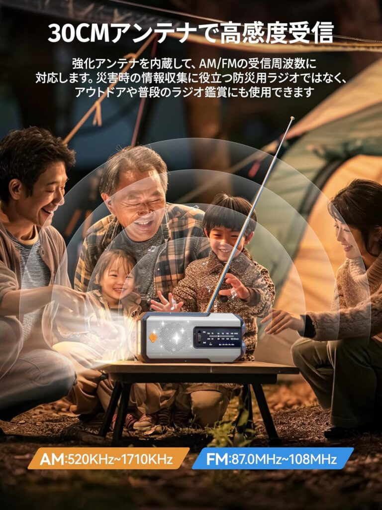 「正直あまり期待していなかったのですが、ラジオの感度が想像以上に良く、AM/FMともにクリアに聞こえました。災害時の情報収集の要として、しっかり役立ってくれそうです。」