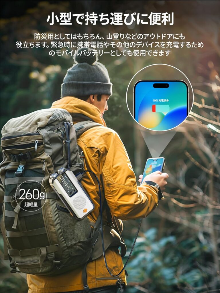 また、260gという驚異的な軽さとコンパクトな設計は、防災リュックの中身を少しでも軽くしたいというニーズに完璧に応えています。ラジオ、懐中電灯、SOSアラームという、災害時に最低限必要とされる機能がこの一台に凝縮されており、「あれもこれも」と多くのグッズを詰め込む必要がありません。