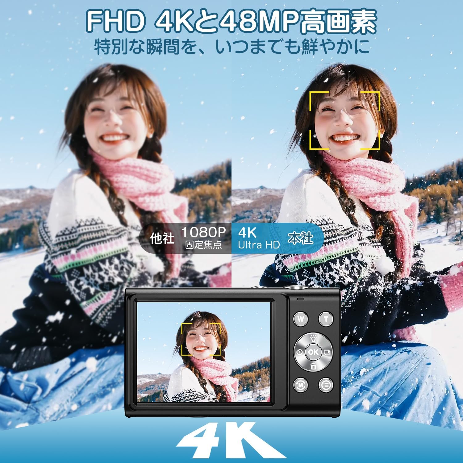 Amazonの低価格デジカメカテゴリで見かけるようになったこのブランド、4K対応・4800万画素という高スペックを謳いながら、価格は1万円前後という驚きのコストパフォーマンスを実現しています。