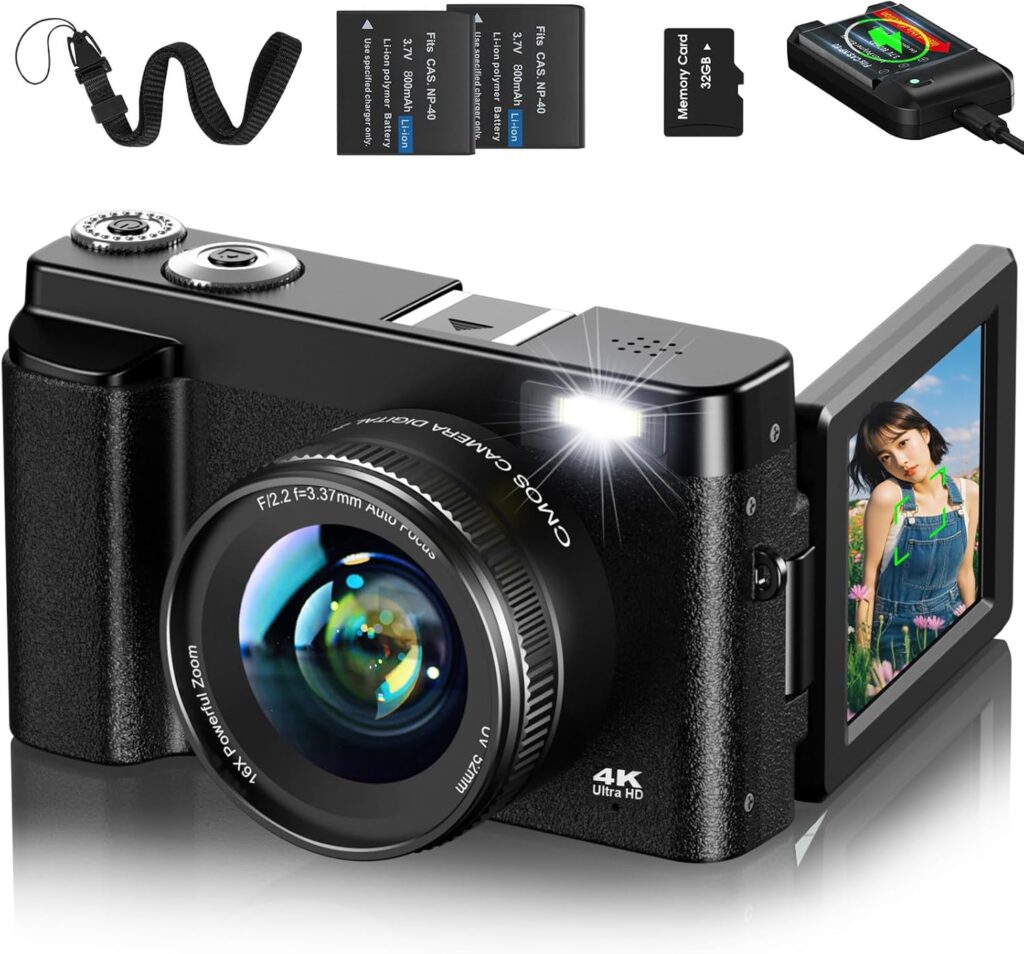 まず理解すべきは、この価格帯の中華系デジカメの多くが、非常に似通ったスペックと機能を備えているという点です。4K動画撮影(多くはソフトウェア処理によるアップコンバート)、4800万画素(画素補間)、16倍デジタルズーム、180度反転式モニター、そしてウェブカメラ機能といった仕様は、まるでテンプレートのように共有されています。これらは、中国・深圳などの製造拠点で同じ部品やソフトウェアを共有して生産されている可能性が高いためです。