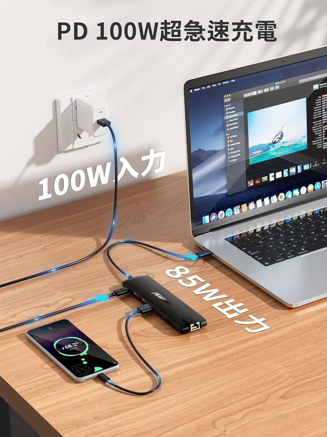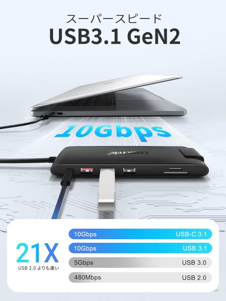 Ugreenも非常に強力な競合であり、デザイン性では拮抗しています。しかし、Lemorele TC96は「軽量さ」において一歩リードしている印象を受けます。多機能ハブは重くなりがちですが、TC96は航空機グレードのアルミニウム合金を採用することで、堅牢さと軽さを両立させています。他社の高機能モデルがズッシリとした重量感を持つのに対し、TC96は「とりあえずカバンに入れておこう」と思える軽快さがあります。