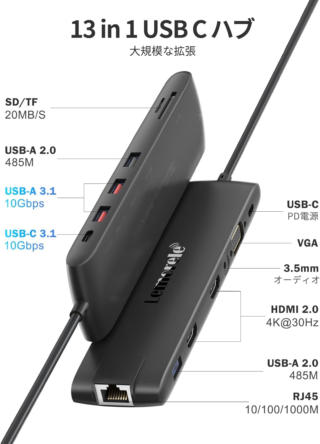 Ankerの製品は世界的な信頼度が高く、保証期間の長さが魅力です。しかし、TC96と同等のポート数(VGAや有線LANを含む)を備えたモデルを探すと、価格が1.5倍から2倍近く跳ね上がることが珍しくありません。Lemoreleは「有名ブランドの安心料」を削ぎ落とし、その分を実用的な機能に全振りしたような立ち位置です。特にVGA端子を備えつつ、ここまでコンパクトにまとまったモデルは他社では減少傾向にあり、古い設備が残る日本のオフィス環境においてはLemoreleに軍配が上がります。