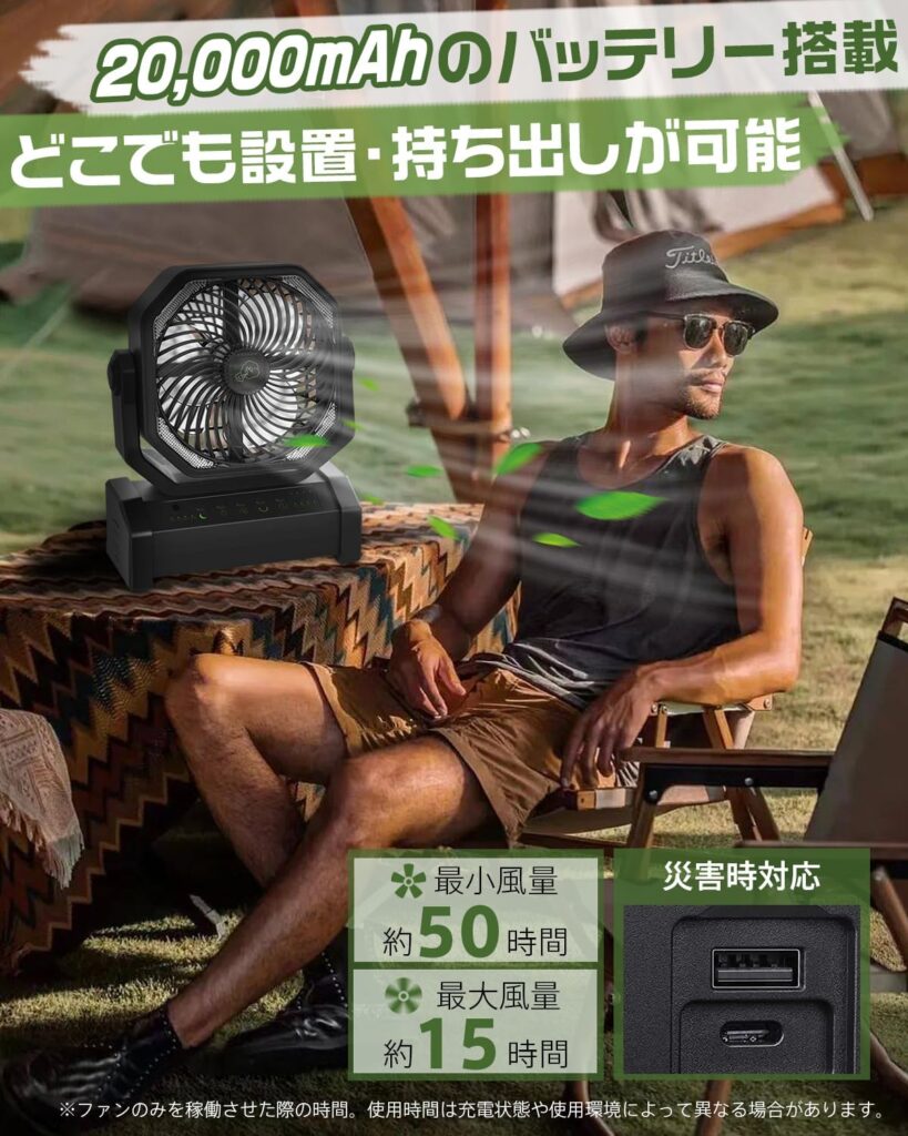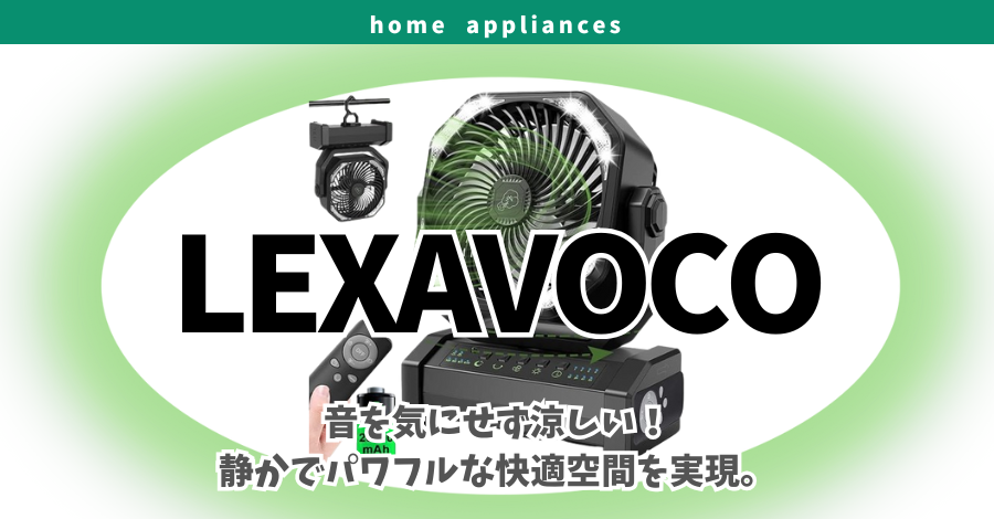 本記事でご紹介するのは、近年ECサイトで注目を集める『LEXAVOCO(レクサボコ)』の「アウトドア扇風機」です。