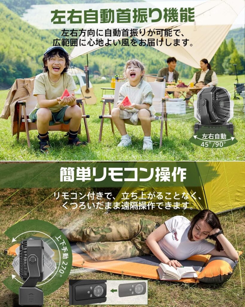 単なる「持ち運べる扇風機」であれば他にも多数存在しますが、本製品の真価は**「バッテリー式」かつ「首振り機能」を搭載している点**にあります。