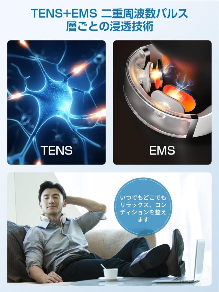 「非防水」であるため、入浴中の使用や汗を大量にかくスポーツ直後の使用には適していません。湿気による故障のリスクがあるため、使用シーンはリビングや寝室、オフィスに限られます。また、あくまで「家庭用」のリラクゼーション機器であり、医療機器認証を受けた大型マッサージチェアのような、骨格を矯正するほどの強力な物理的パワーを求めている場合には、期待外れに終わる可能性があります。