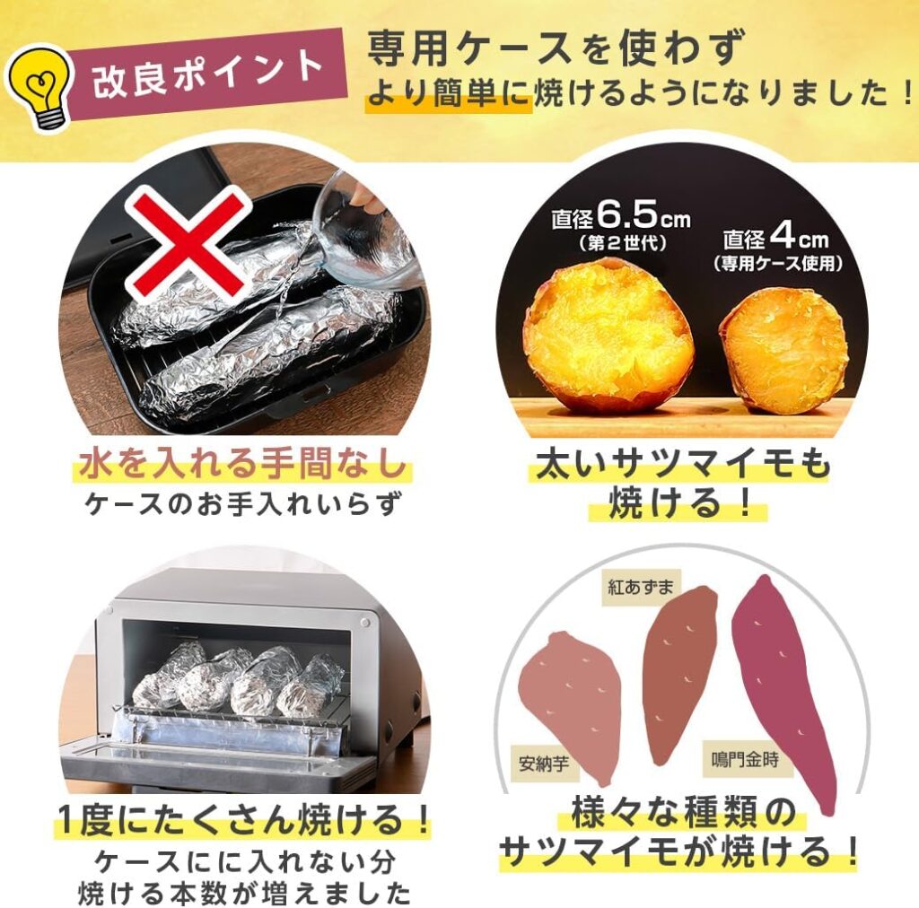 • 「さつまいもの種類を変えるだけで、ホクホク系からねっとり系まで色々な食感が楽しめます。自分好みの焼き加減を探求するのが新しい趣味になりました。」