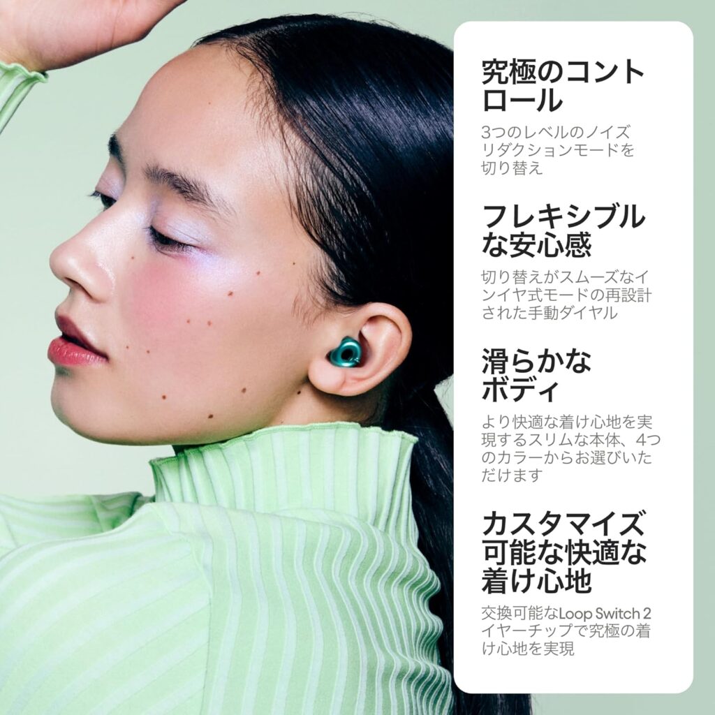 • 快適性: Loop Quietは全てがシリコンでできており、非常に柔らかく、つけたまま寝ても痛くありません。睡眠用としてはQuietが最強です。Switch 2はプラスチック部品を含むため、睡眠時の使用には適していません。