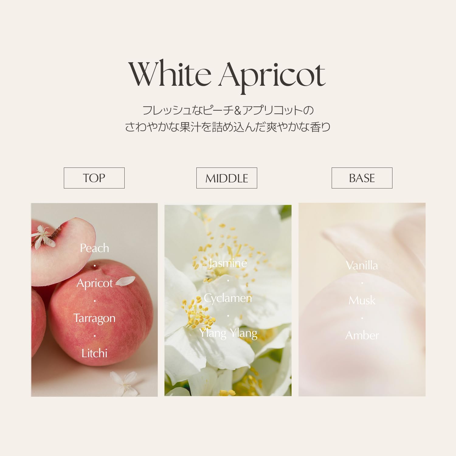 - 香り:ホワイトアプリコット