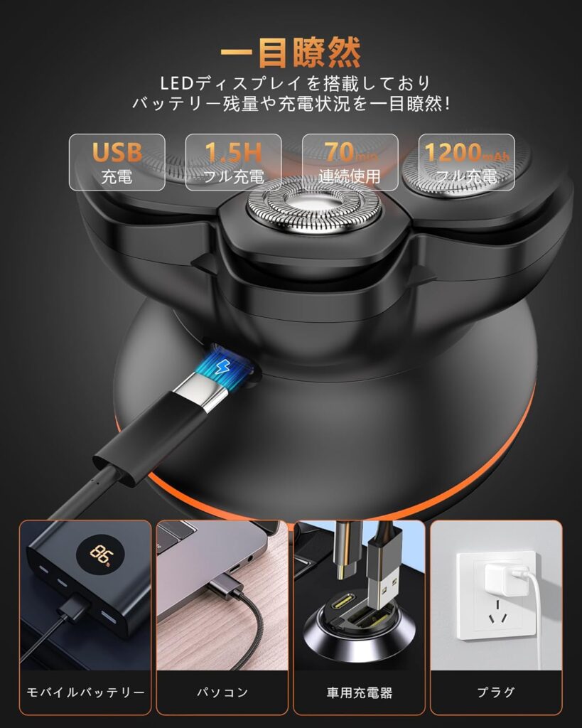 - 「ヘッドが複数付いているおかげで、頭のカーブにぴったり密着して剃り残しがほとんどありません。」
