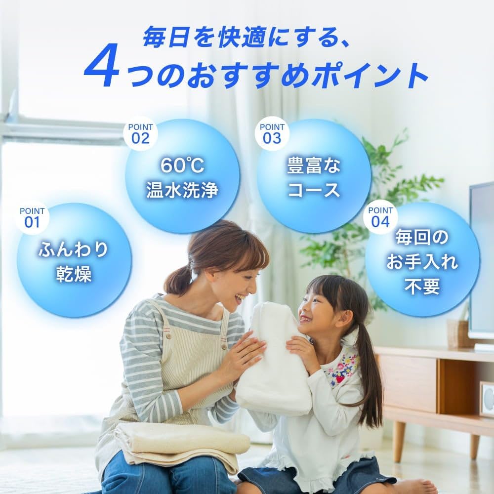 - 「高温洗浄モードを使うと、子供の泥汚れやタオルの生乾き臭もしっかり落ちて満足しています。」
